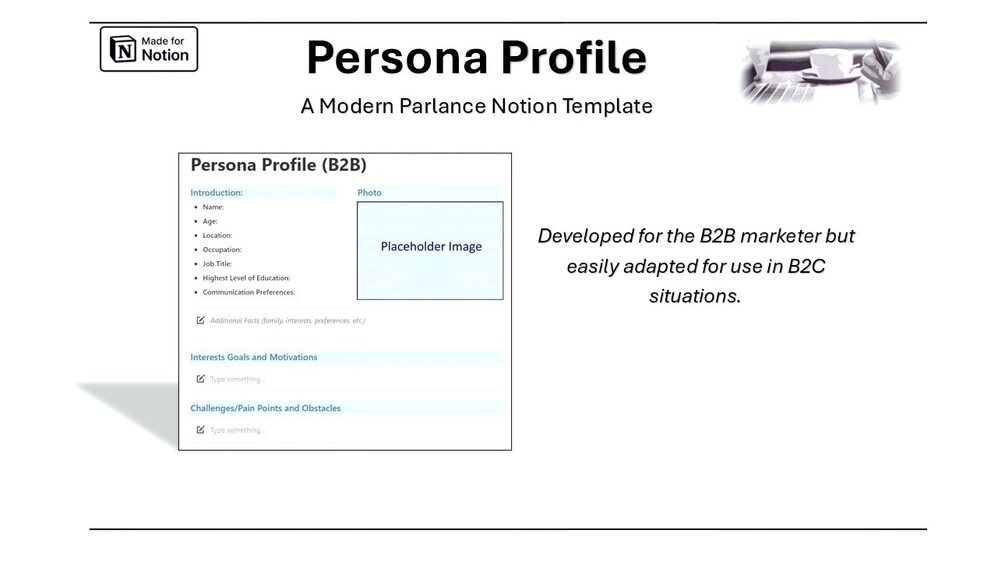 Template to define who you’re talking to, what they want, what they don’t & what you can do for them. This one is aimed at B2B marketing efforts but is easily customized for B2C efforts.